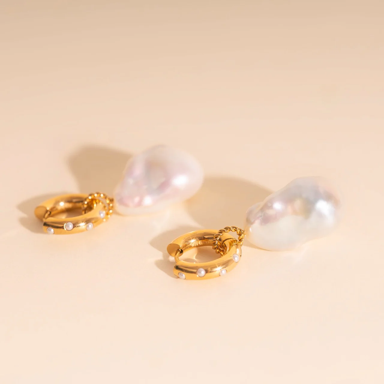 Jumbo Baroque Natural Pearl Huggie Hoop Charms